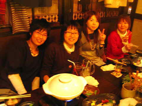 2007年絵画教室忘年会 12月16日(日曜日)午後18時〜 ○一次会の様子 ○二次会の様子 老若男女問わず、皆同じ表情 どこかで気持ちはひとつにつながっているような気がいたします これからも大切なものを忘れずに、ひとりひとりに対し うまく還元できていかれるような、そんな 絵画教室に、あたため 育てていかれたらと思っております。 みなさん、ありがとう!!! 二村潤絵画教室 top