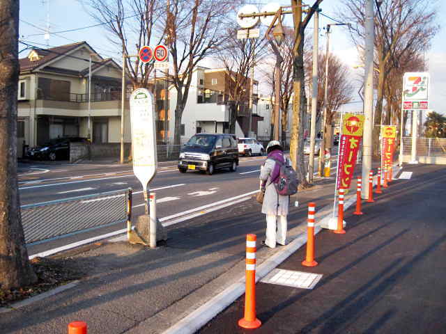 こちらがバス停「下大久保」となります (その向かい側…道を挟み右側には「伝説のすた丼屋」さんがございます)