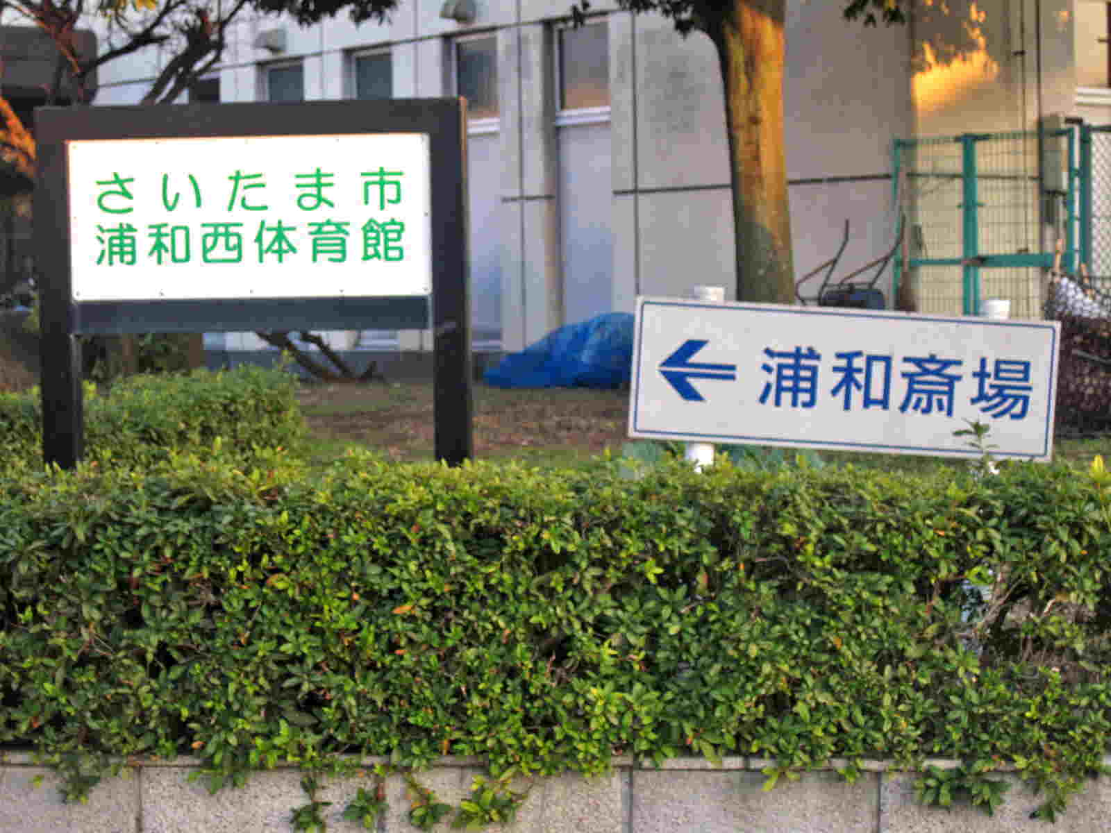 左手側に浦和西体育館 そして右側には浦和斎場第2駐車場といった看板がみえて参ります
