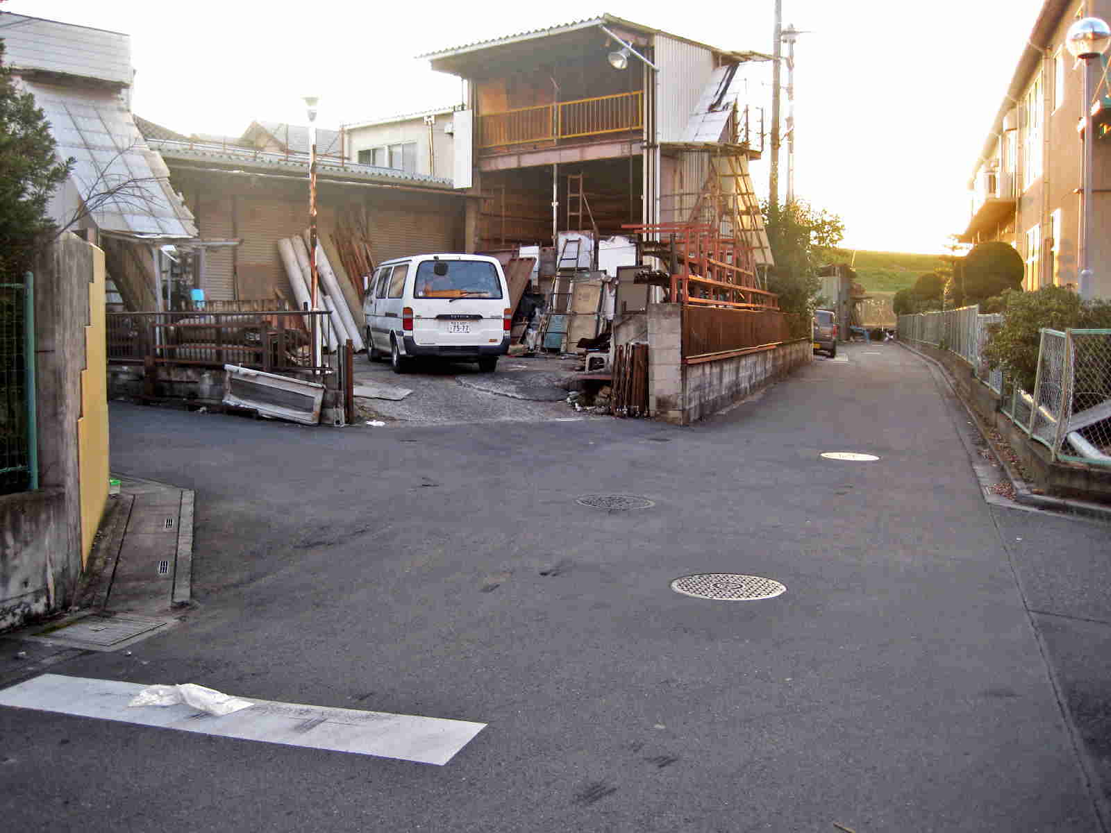 そのすぐ先には このような道のつきあたりがみえてきます(この正面にあります建物が児童養護施設『カルテット』さんです)