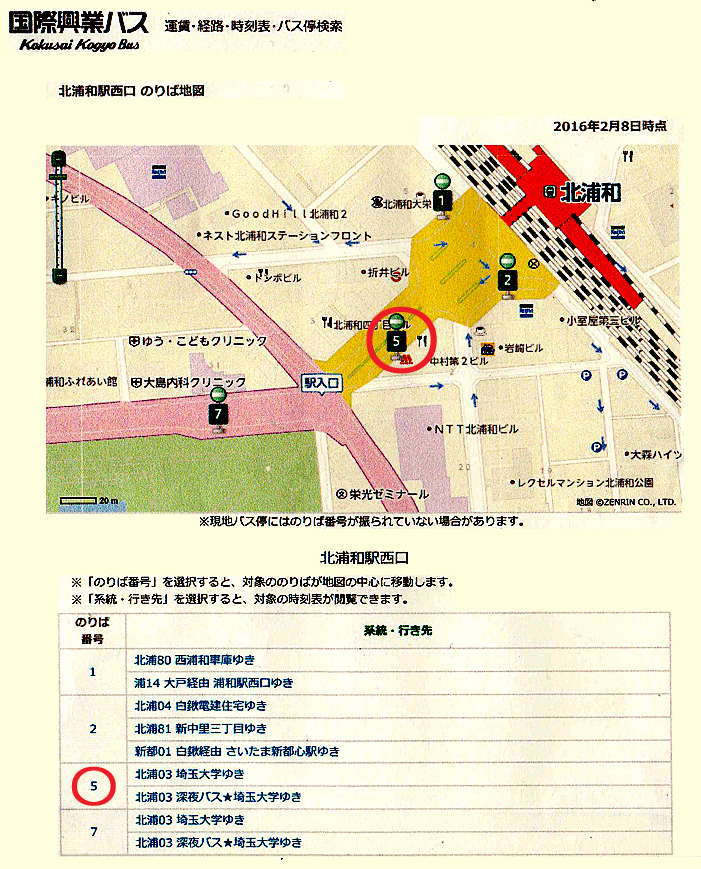 バス停:埼玉大学から下大久保までの詳細です(北浦和からバスにていらした際)