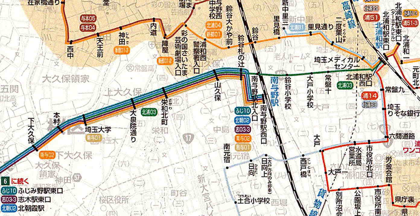 ※「南与01 埼玉大学ゆき」のバス以外はすべて停車いたします「下大久保」にて下車