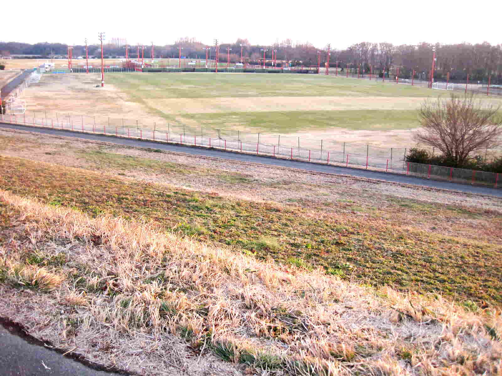 土手に登りますと その向こうには レッズランド