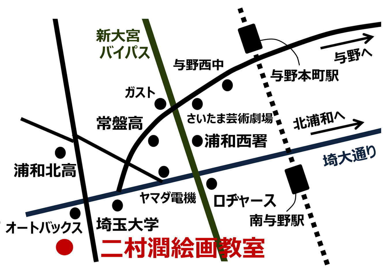 【住所】 埼玉県さいたま桜区大字下大久保1603-6 二村潤絵画教室