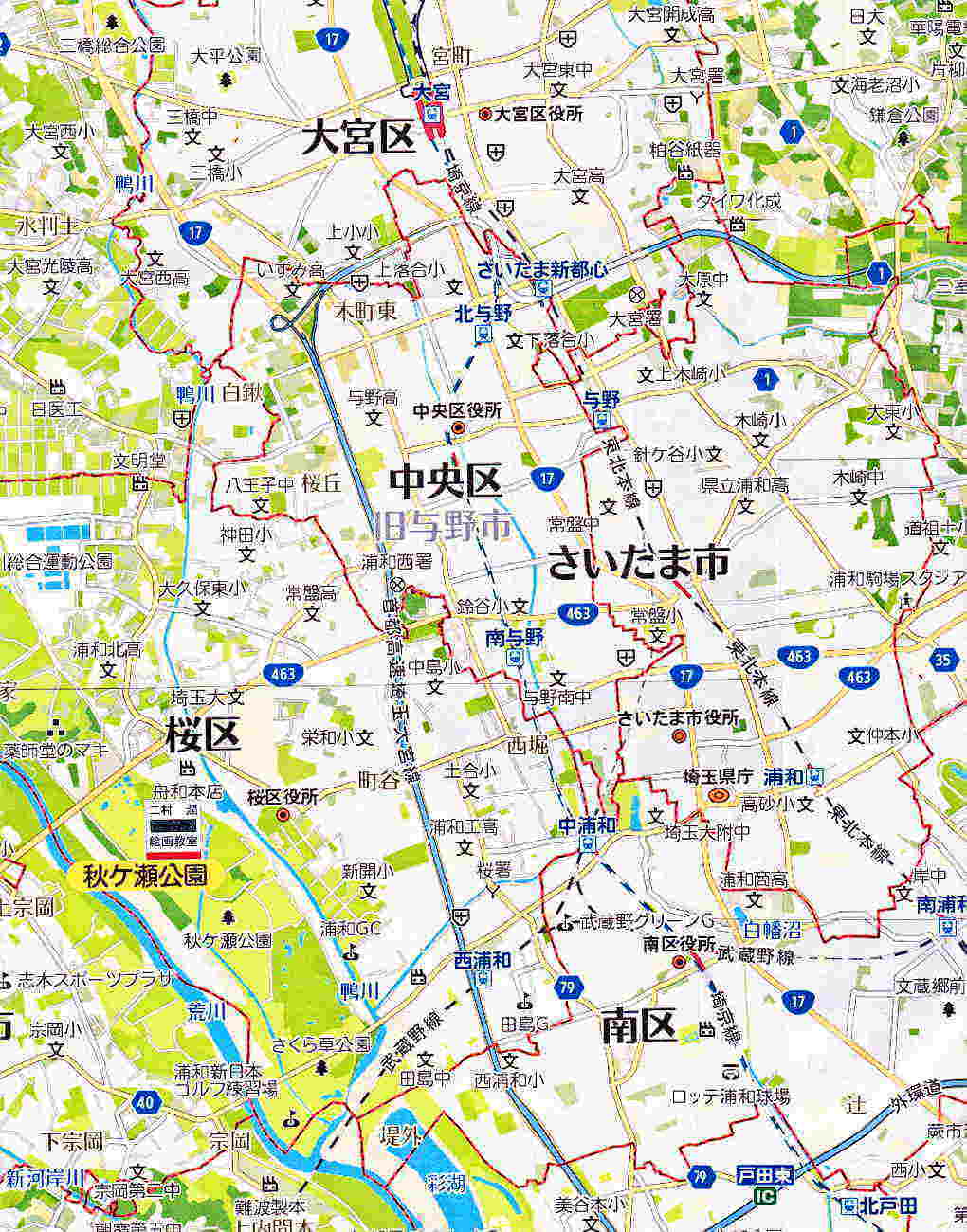 埼玉大学〜下大久保までの地図、およびその詳細について