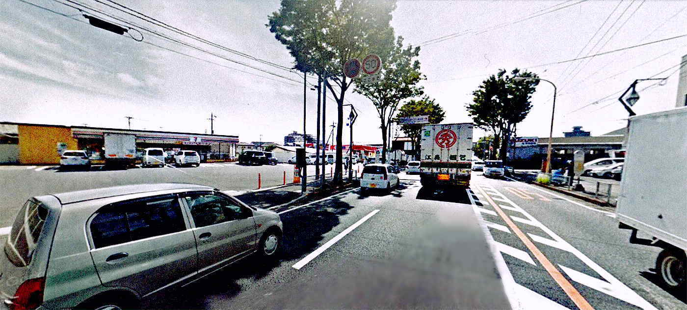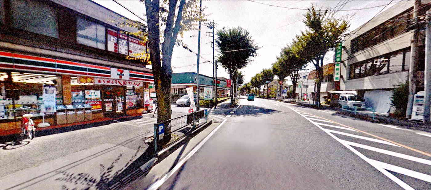 下大久保交差点手前角となります、『下大久保バス停・セブンイレブン』の画像