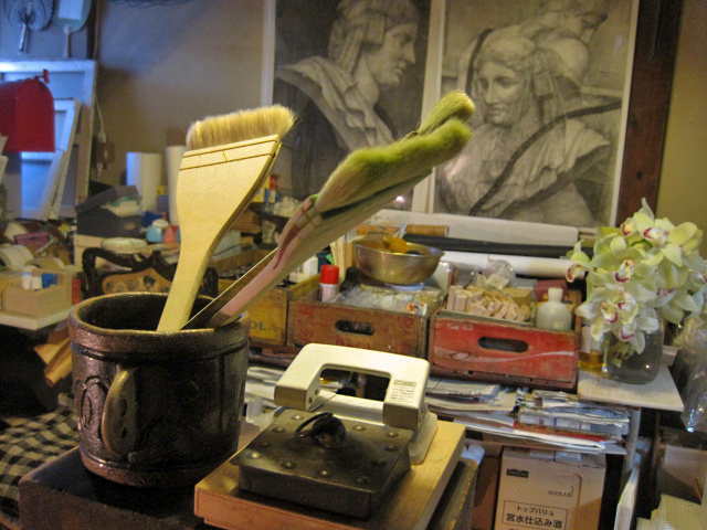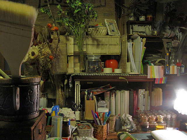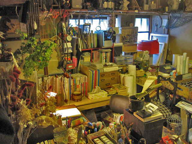 色々なる資料・および画材・モチーフ・画集、等々…実に様々なるものを納めております(※以下、そちらの画像でございます)