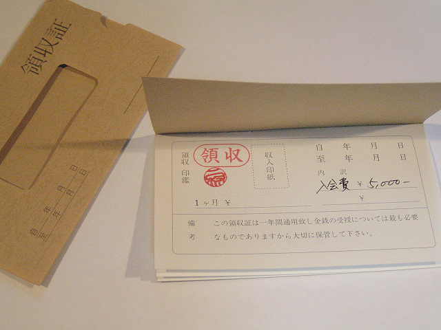 ご入会いただきました段階で、このような「領収証 兼 会員証」を発行させていただきます。